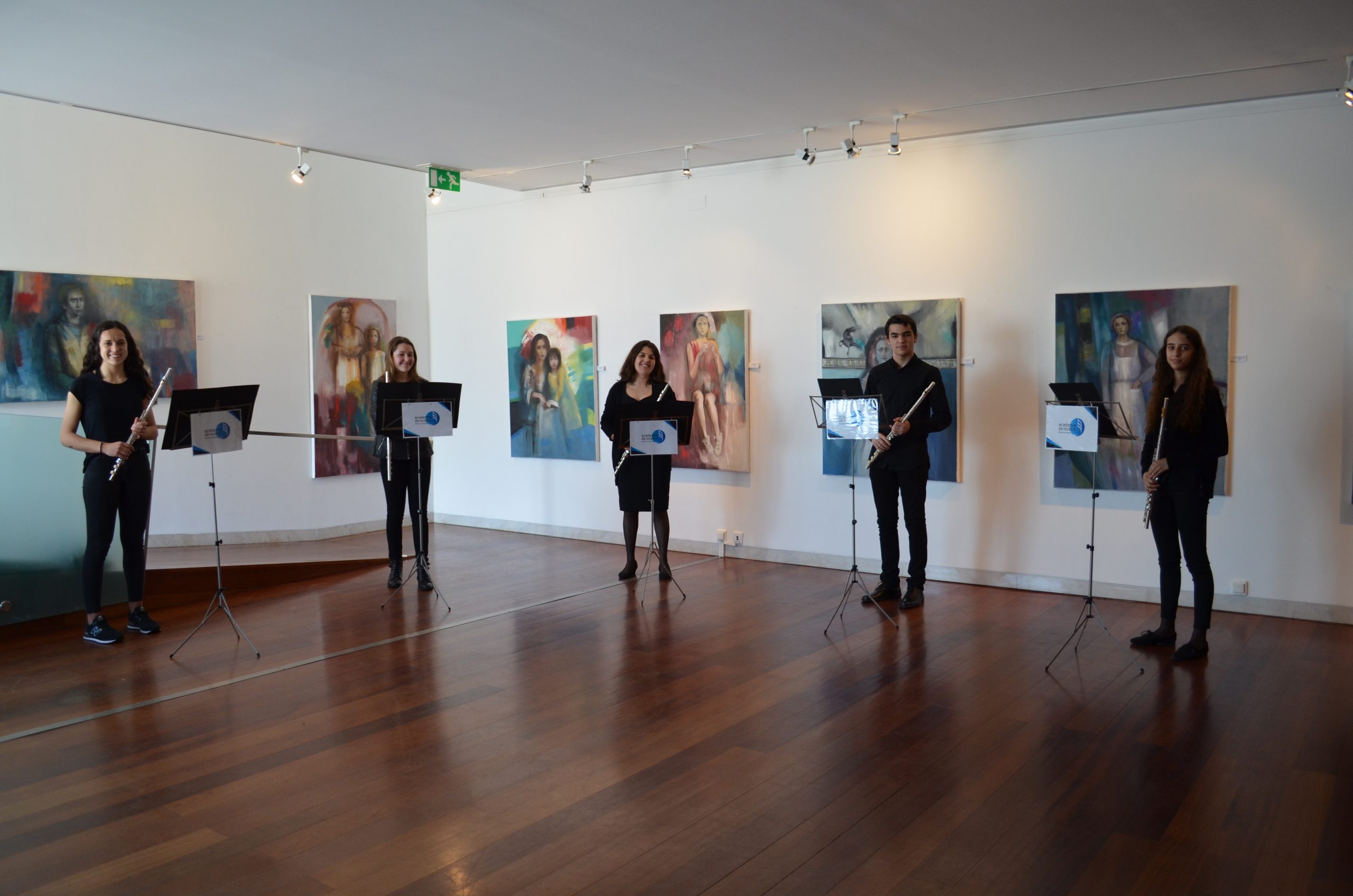O Ensemble de Flautas da AMOA, composto pela docente Sandra Camarinha e pelos alunos Nádia Paiva, Gabriela Soares, António Portugal e Carolina Lopes, abriu a Exposição de Pintura “Quando o tempo não tem pressa” de Gina Marrinhas, na Galeria Tomás Costa.