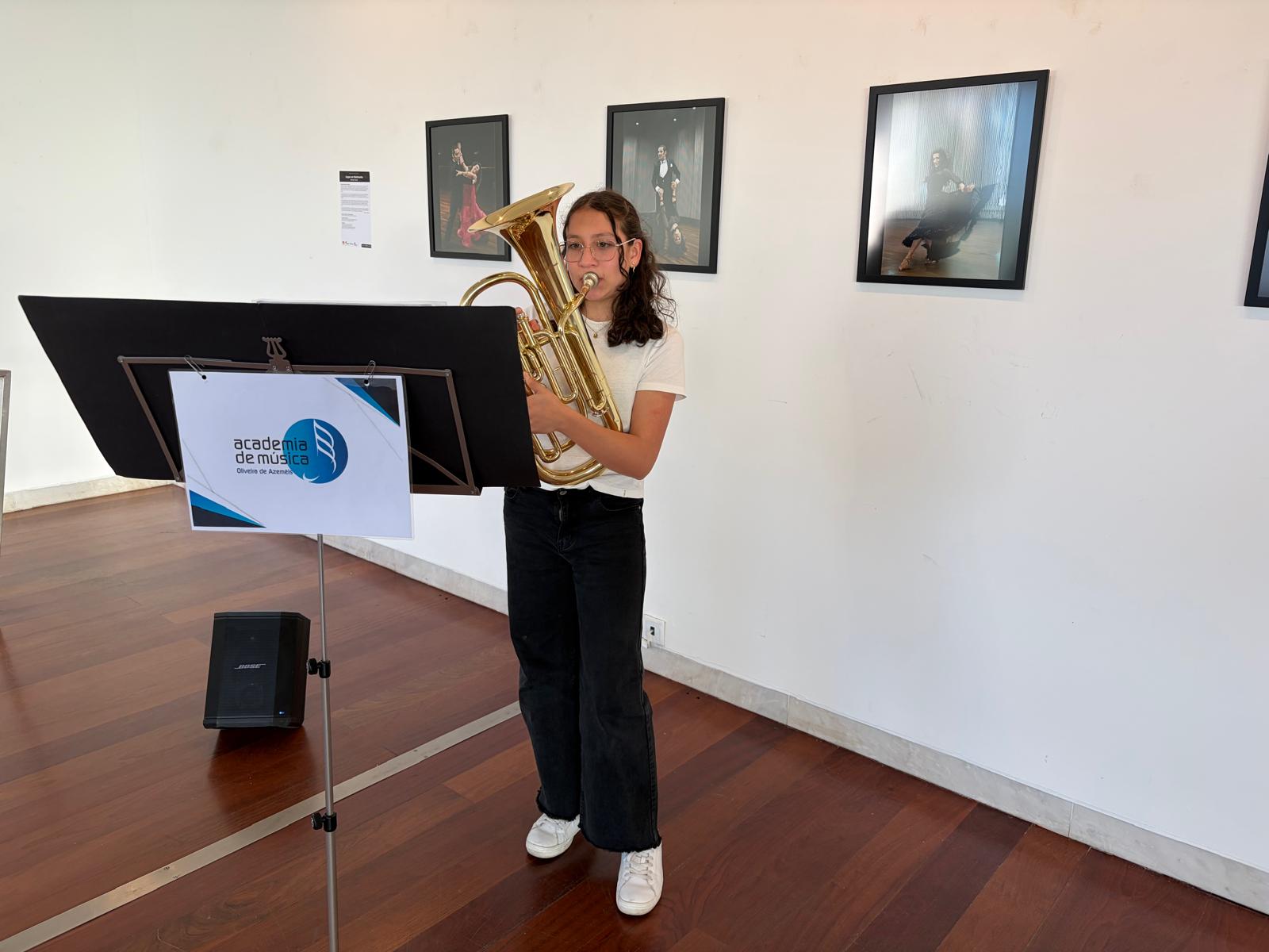 Esta tarde, na Galeria Municipal Tomás Costa, estiveram as nossas alunas Lisiane Almeida (bombardino) e Carlota Silva (fagote)! A Lisiane e a Carlota tocaram na sessão de inauguração da exposição de fotografia “Corpos em Movimento” de Hermínio Tavares.