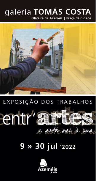 Galeria Tomás Costa Oliveira de Azeméis, PortugalDe 09 a 30 de julho de 2022, a Galeria Municipal Tomás Costa acolhe a exposição "entr'artes", uma exposição que reúne trabalhos nas áreas da pintura, escultura e fotografia. A sessão de abertura terá lugar às 16h.