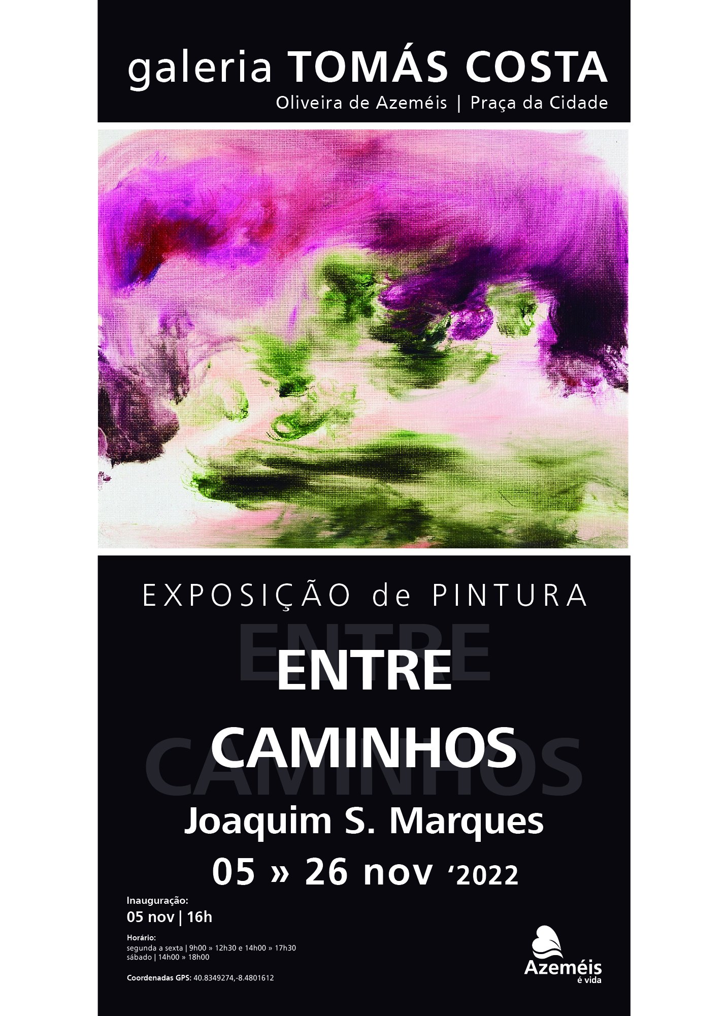 Galeria Tomás Costa Oliveira de Azeméis, PortugalDe 05 a 26 de novembro de 2022, a Galeria Municipal Tomás Costa acolhe a exposição "Entre Caminhos", uma exposição de pintura do artista Joaquim S. Marques. A sessão de abertura terá lugar às 16h, e contará com a performance das alunas Maria Oliveira e …