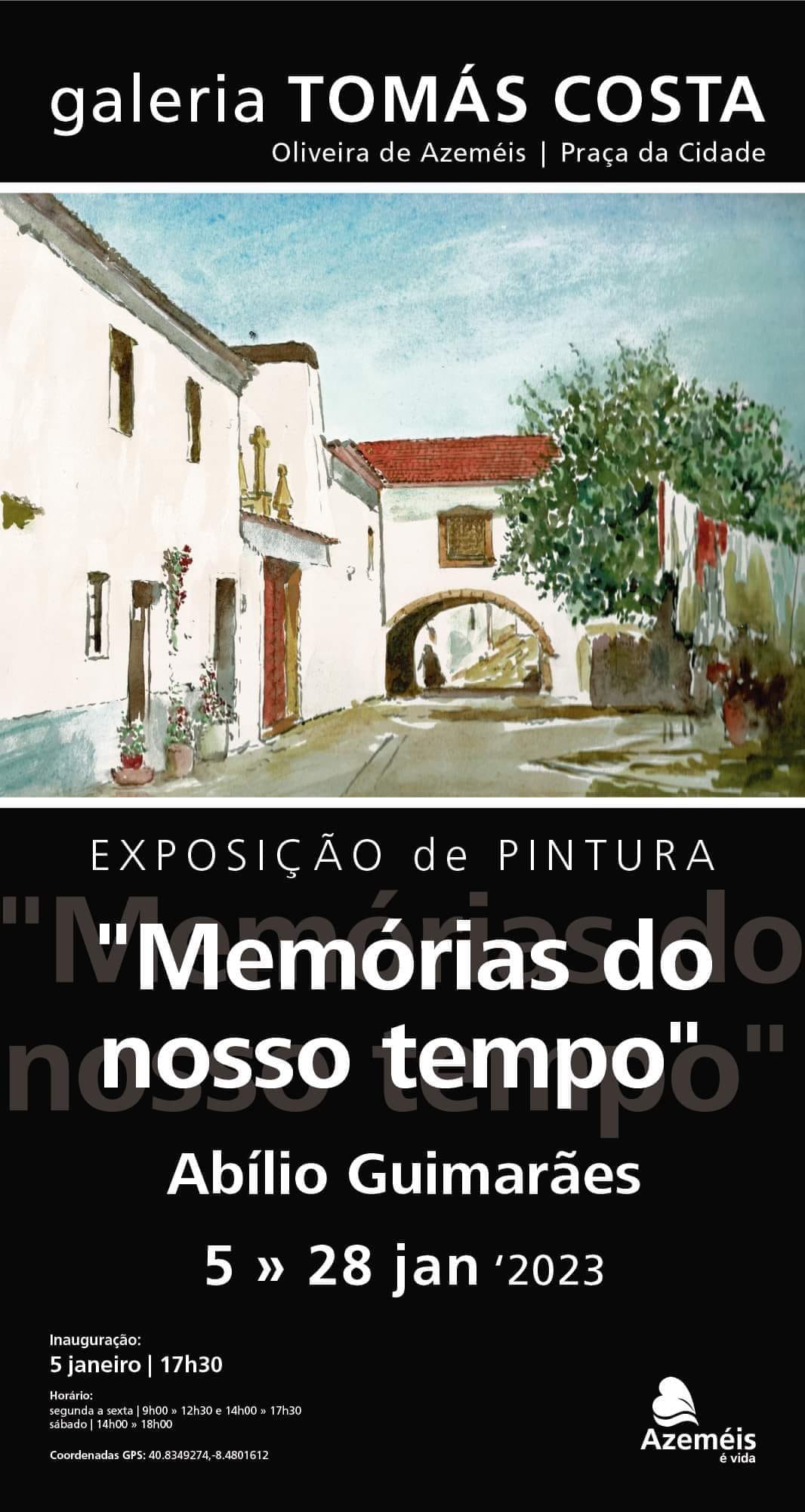 Galeria Municipal Tomás da Costa Rua Dr. Ernesto Soares dos Reis, Oliveira de Azeméis, PortugalNo próximo dia 5 de janeiro, pelas 17H30, é inaugurada na Galeria Municipal Tomás Costa a exposição de pintura "Memórias do nosso tempo", do Artista Abílio Guimarães. Esta sessão de abertura contará com a performance dos alunos da AMOA Vasco Magalhães e Maria João Pinho, …