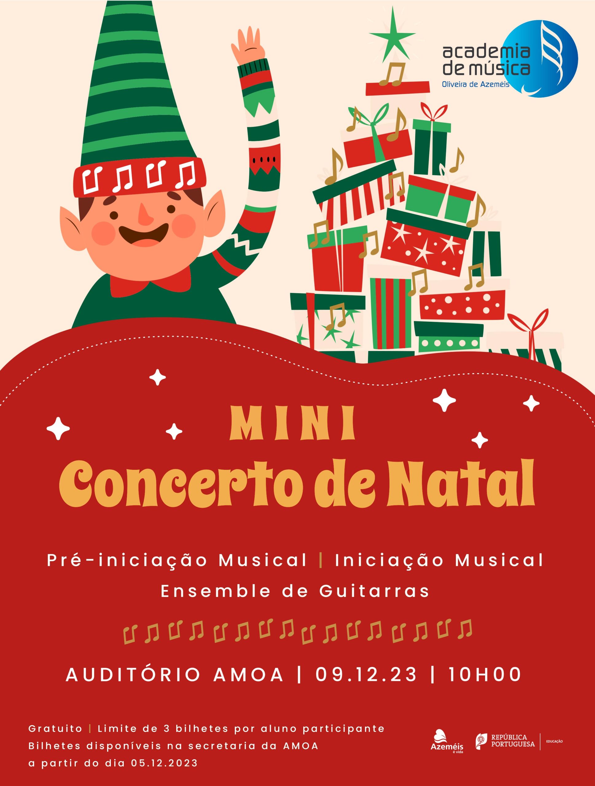 As classes de Pré-Iniciação e Iniciação Musical, em conjunto com o ensemble de guitarras, vão dar um mini concerto de Natal! O Mini concerto de Natal terá lugar no dia 09 de Dezembro, às 10H, no Auditório da AMOA!