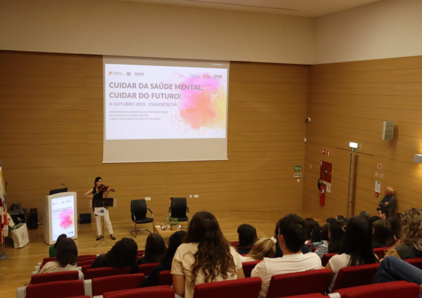 Os Professores da AMOA Miguel Pais (trompete) e Ana Almeida (violino), atuaram hoje na sessão de abertura da VII Conferência Internacional de Investigação em Saúde, na Escola Superior de Saúde Norte da Cruz Vermelha Portuguesa.